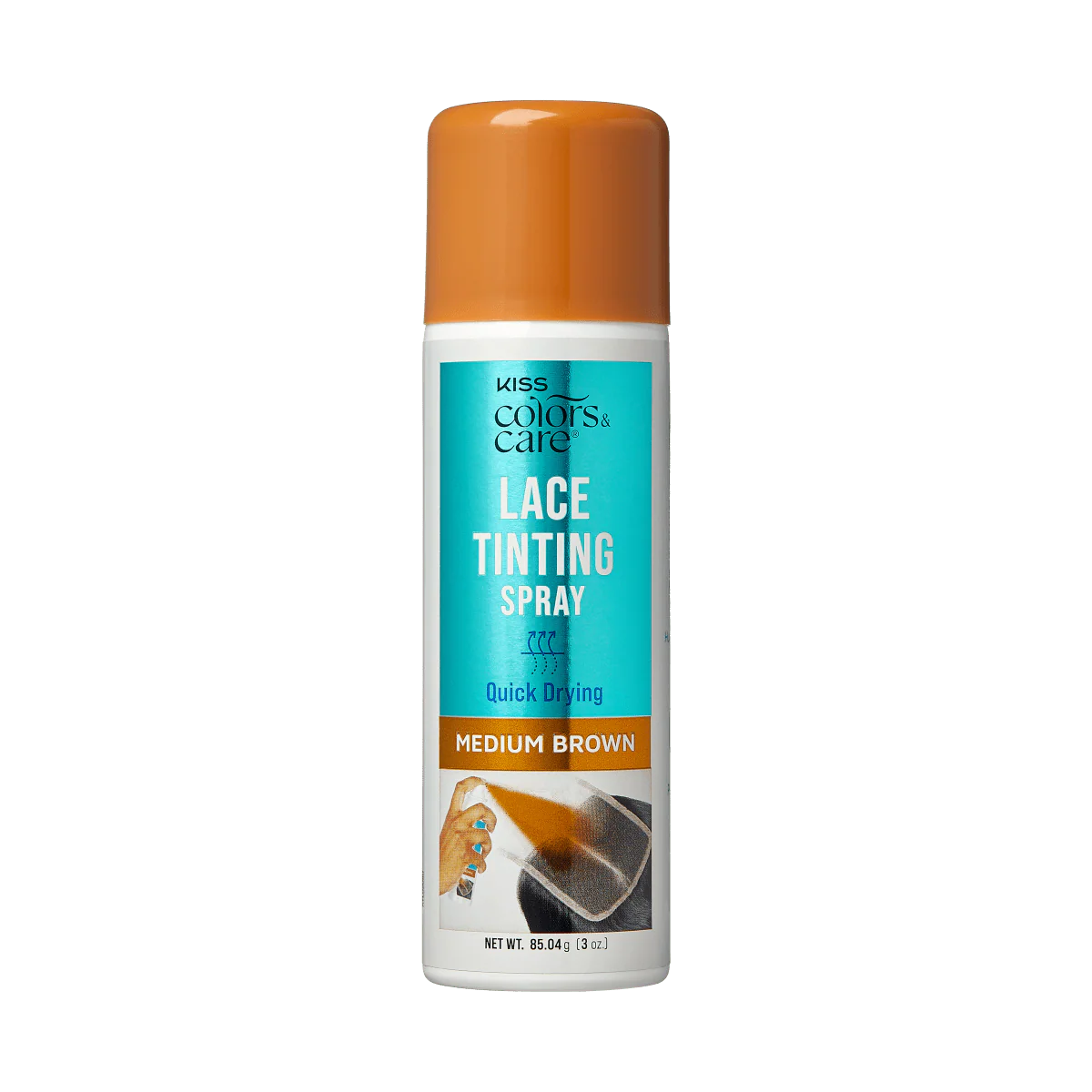 Three (3) Lace Tinting Sprays in Medium Brown: Quick-drying, humidity-resistant, long-lasting formula that blends lace with a natural finish, offers buildable coverage without residue, and washes out easily with shampoo.